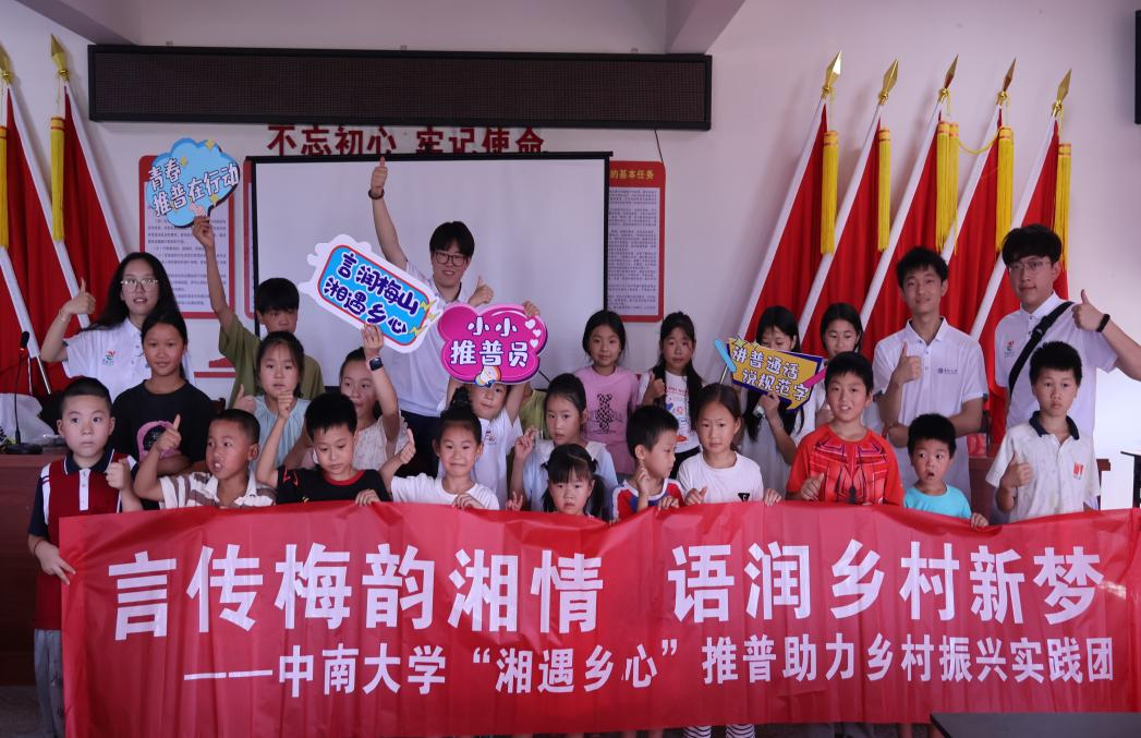 2025年7月,中南大学“言润梅山,湘遇乡心”推普助力乡村振兴实践团深入湖南省娄底市石冲口镇石笋铺村,开展了为期一周的普通话推广社会实践。通过政校联动筹备、创新课程设计与乡土化教学实施,实践团以语言为桥梁,在石笋铺村架起“推普桥”,为乡村振兴注入文化动能。