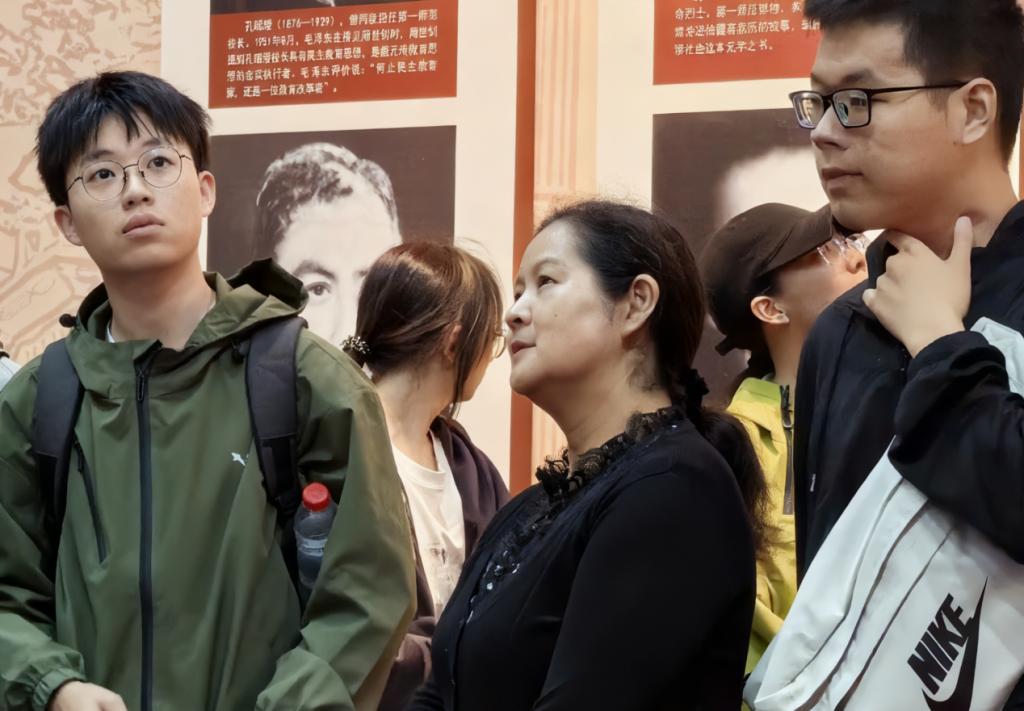 同学们近距离观摩毛泽东批注的《伦理学原理》手稿、《湘江评论》创刊号等文物,沉浸式体验百年前的校园场景。在专业讲解员引导下,大家系统参观了各主题展厅,通过图文资料和历史文物,深入了解毛泽东在第一师范的求学经历及早期革命活动,直观认识相关历史进程。此外,专题影片《青春之生》的放映,再现了毛泽东“文明其精神,野蛮其体魄”的求索历程,进一步激发了同学们的爱国热情。