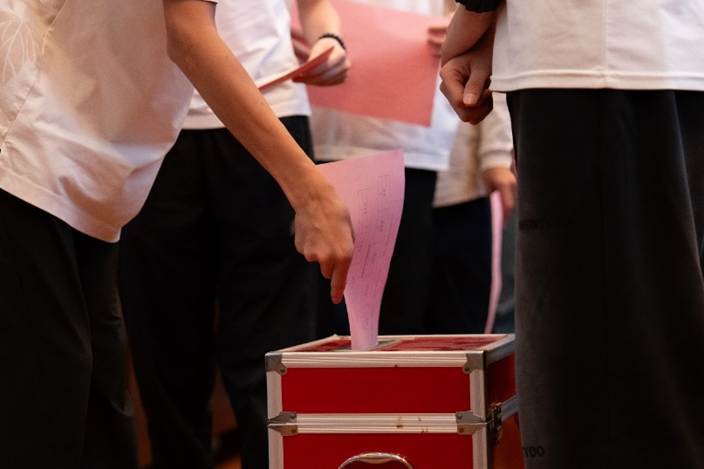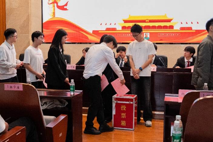 随后,代表们听取并审议了学院第二十四届学生会、研究生会工作报告。选举阶段,各学生代表本着公平、公正、公开的原则填写选票并有序投票。经无记名差额投票,王亚婷、杜雨欣2名同学当选为新一届学生会主席团成员;陈含冰、李佳烔、杨焕雯3名同学当选为研究生会主席团成员;马奕航等15人当选出席中南大学第十次学生代表大会暨研究生代表大会的正式代表。