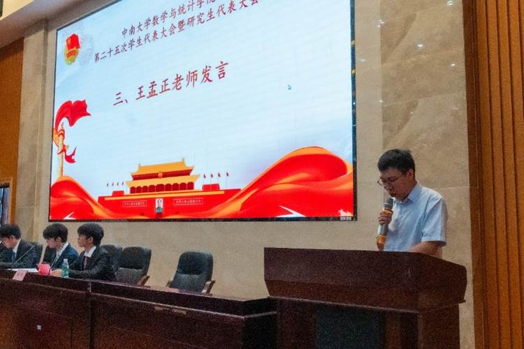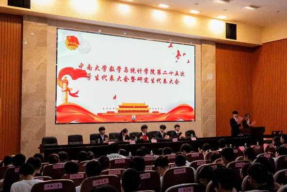 2025年9月27日下午,中南大学数学与统计学院第二十五次学生代表大会暨研究生代表大会在新校区数理楼报告厅顺利召开。学院辅导员王孟正、王伟、王仕豪、彭益康、刘艺菲以及学生代表170余人出席大会。