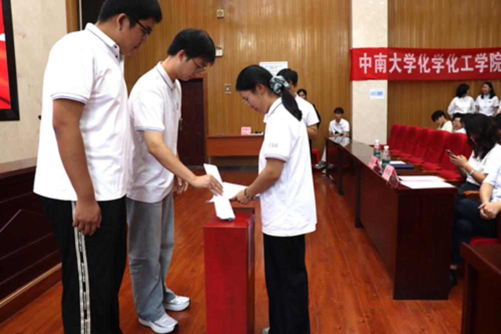为推进学生组织民主建设,总结过往工作并选举新一届学生骨干,2025年9月27日下午,中南大学化学化工学院第二十一届学生、研究生代表大会在潇湘校区化学楼133多功能报告厅顺利召开。化学化工学院党委副书记滕晓雯、关工委副主任蒋利武、学工办主任白丹妮、学工办副主任赵元超、团委书记肖茜斤、各级本科生辅导员、外国语学院学生会执行主席李海宁及共76名学生代表参与会议。