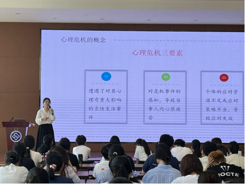 接着,梁老师从朋辈心理互助、心理危机识别与预防等方面展开讲解,深入浅出地分析了大学生可能面临的心理适应风险,介绍了学校心理健康中心的服务内容,以及“校级、院级、班级、朋辈”四级心理防护体系。她特别强调了朋辈心理互助者在倾听、宣传和信息反馈中的重要作用,鼓励同学们积极利用身边心理资源,以健康心态面对大学生活。