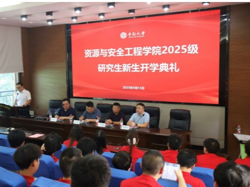 2025年9月14日上午,资源与安全工程学院在采矿楼T302报告厅举行资源与安全工程学院2025级研究生新生开学典礼,学院党委书记秦进、党委副书记岳龙、副院长邓红卫、副院长李地元出席开学典礼,研究生导师代表和2025级研究生新生共计150余人共同参与,典礼由学院学工办主任郑强伟主持。