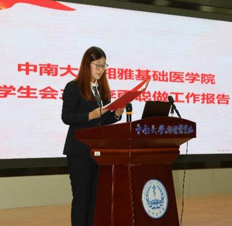 湘雅基础医学院第九届研究生会主席吴海同学作研究生会工作报告,报告表示研究生会将继续以思想引领为旗帜、以学术创新为引擎、以权益服务为根本、以品牌项目为抓手,凝聚全院研究生之力,服务国家战略与学院“双一流”建设,以实干与实绩书写新时代湘雅青年的青春答卷。