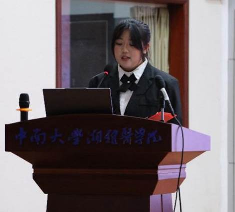 随后,湘雅药学院代表陈杨同学致贺词,她表达了对本次大会的热烈祝贺与期许,希望两院学子在今后的工作中进一步加强交流协作,携手并进,共同成长。致辞后,与会师生合影留念。