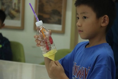整个活动过程中,志愿者始终保持耐心且细致的态度,全力保障科普实验的顺利开展与良好效果。在志愿者的专业指导下,小朋友们成功制作出肺部模型——通过拉动底部橡皮膜,模拟肺叶的气球会同步膨胀与收缩,清晰直观地再现出肺部呼吸的动态过程。最后,志愿者与小朋友们合影留恋,在欢声笑语中为本次志愿活动画上圆满的句号。
