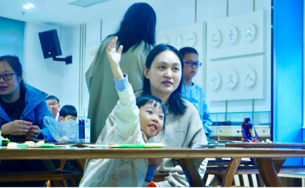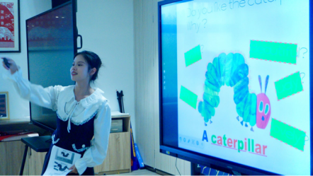 活动在志愿者生动的中英文讲述中开始。孩子们跟随毛毛虫从破壳而出到饱食食物,最终破茧成蝶的成长历程,体会生命蜕变的奇妙过程。讲述过程中,志愿者配合图画提问,引导儿童观察与表达,现场气氛活跃。