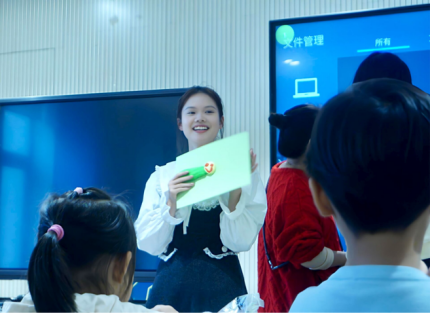 在“30秒单词极限挑战”环节,孩子们围绕昆虫、食物、颜色等主题进行词汇接龙。游戏不仅锻炼了儿童的反应能力与词汇量,还在轻松氛围中增添了其英语学习的兴趣。