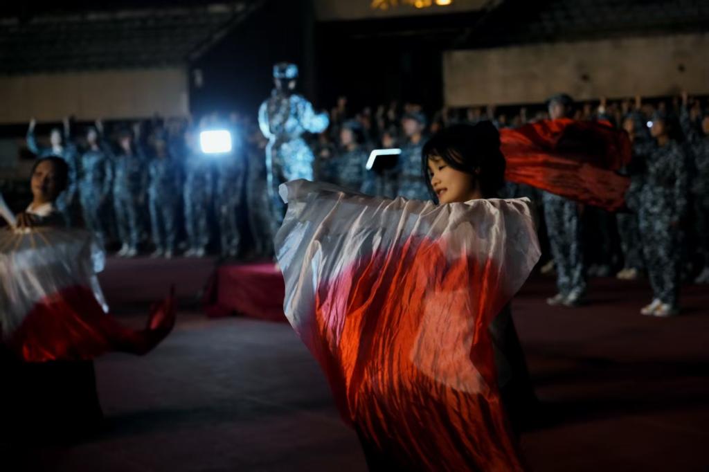 比赛正式开始前,二十八连全体同学整理着装、昂首挺胸,怀着紧张与激动的心情,在指挥的引导下迅速排好演出队形。所有人都精神饱满、目光坚定,时刻准备着将最佳状态展现在赛场上。