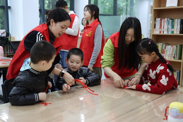 活动尾声,参与者互赠亲手编织的中国结,并齐声朗诵经典秋日诗篇。从“树树皆秋色,山山唯落晖”到“我言秋日胜春朝”,朗朗诵读声在室内回荡,完成了一场跨越古今的文化对话。