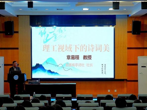 11月1日11:00,交通运输工程学院于天心校区世纪楼C201国际报告厅召开《理工视域下的诗词美》主题讲座,本次讲座特邀章易程教授担任主讲人,为在场学子带来一场融汇文理、贯通古今的思想与美学盛宴。学院团委书记蔡明旭与众多学生一同聆听了讲座。