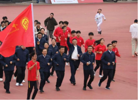 庄严的升国旗仪式后,副校长何军致开幕辞。他强调体育是学校教育的重要组成部分,勉励全体师生以体育强体魄,以拼搏励意志。在开幕式最后的领导示范健身跑环节,耿贵斌副书记参与其中,迈着稳健的步伐,用实际行动践行“全民健身”理念。跑道两侧,我院学子挥舞院旗、高声呐喊,为领导们加油助威,将现场气氛推向高潮。