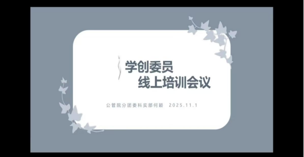 为规范学习(双创)委员工作内容,促进学生社会实践与创新创业,11月1日晚7时,公共管理学院举办2025年学习(双创)委员线上培训会,学院分团委书记梁慧出席,全体本科班级学习(双创)委员参加。会议由公共管理学院分团委科创实践部部长何颖主持。