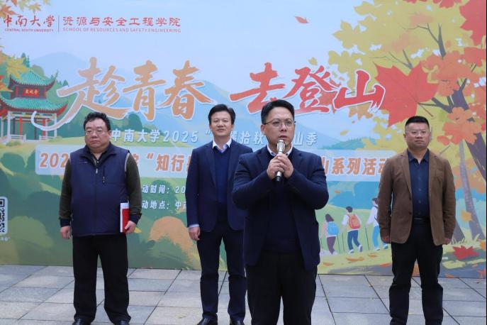 秋高气爽,层林尽染。11月12日下午,中南大学资源与安全工程学院“知行岳麓·师生相伴”登山系列活动启动仪式在岳麓山校区采矿楼前坪顺利举行。院党委书记秦进、院长周子龙、院党委副书记岳龙、副院长邓红卫出席,与师生代表共同见证活动启幕。活动由王子涵老师主持。
