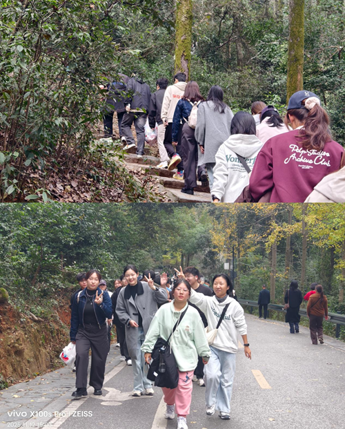 活动当天,全体同学于岳麓山校区升旗台登山活动打卡处集合,怀着昂扬的斗志踏上登山征程。途中,大家相互鼓励,携手前行,既展现了当代青年学子的蓬勃朝气,也进一步增进了两个团支部之间的交流与协作。