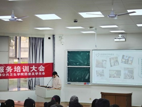 2025年10月12日,中南大学湘雅公共卫生学院志愿服务培训大会于中南大学杏林校区福庆楼T105顺利开展。此次会议由学院学生会青年志愿者部部长肖羽佳主讲,2024级全体本科生到场参与。