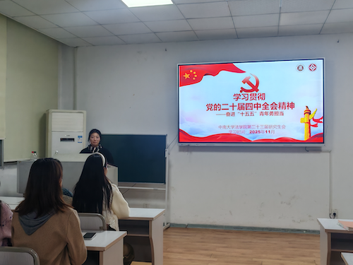 2025年11月12日下午,为引导本院研究生深刻领会全会精神,强化青年学生的思想引领和责任担当,法学院研究生会组织全体成员开展党的二十届四中全会专题学习活动,推动理论学习走深走实、入脑入心。