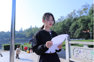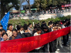 宣讲结束后,登山活动正式启动。同学们从云麓山庄出发,沿着“中南小团子”微信小程序规划的安全路线,途经半山腰小亭子、长沙会战碑等打卡点,最终抵达岳麓山电视塔。各打卡点设置了特色打卡姿势,从“攀登起步”的握拳高举,到“步步登高”的阶梯式站位,再到终点“胜利”手势的集体呐喊,每一个环节都凝聚着团队协作的力量。