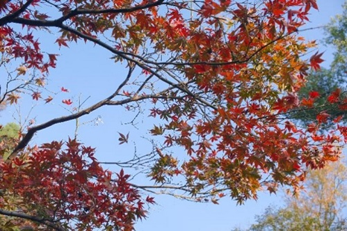 抽取“枫叶・咏秋”主题的同学们漫步于山间步道,将不同枫叶与蓝天、绿树交织的斑斓秋色纳入画框,生动还原“霜叶红于二月花”的诗意画卷。