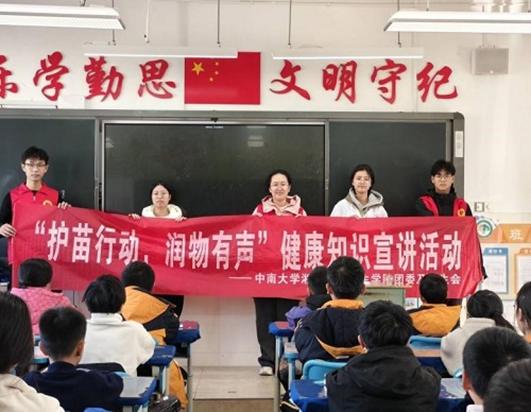 2025年11月19日,中南大学湘雅公共卫生学院团委及学生会联合学院本科生团支部组织的“护苗行动,润物有声”健康科普宣讲活动于长沙市岳麓区博才咸嘉小学与五星小学顺利开展。