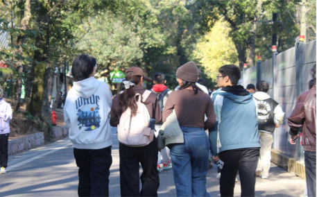 活动当日,同学们在岳麓山校区升旗台集结出发。登山途中,大家结伴而行,相互鼓劲。遇到陡坡路段,体力充沛的同学主动伸手帮扶;感到疲惫时,同伴们的加油声与欢声笑语总能驱散倦意。