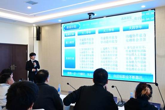 选手展示后,评委们点评,肯定了大家前期准备的充分性和规划思路的多样性,就职业目标合理性、实现路径具体性等提出改进建议,指出职业规划是动态调整过程,鼓励同学们关注行业动态、优化规划、付诸行动。