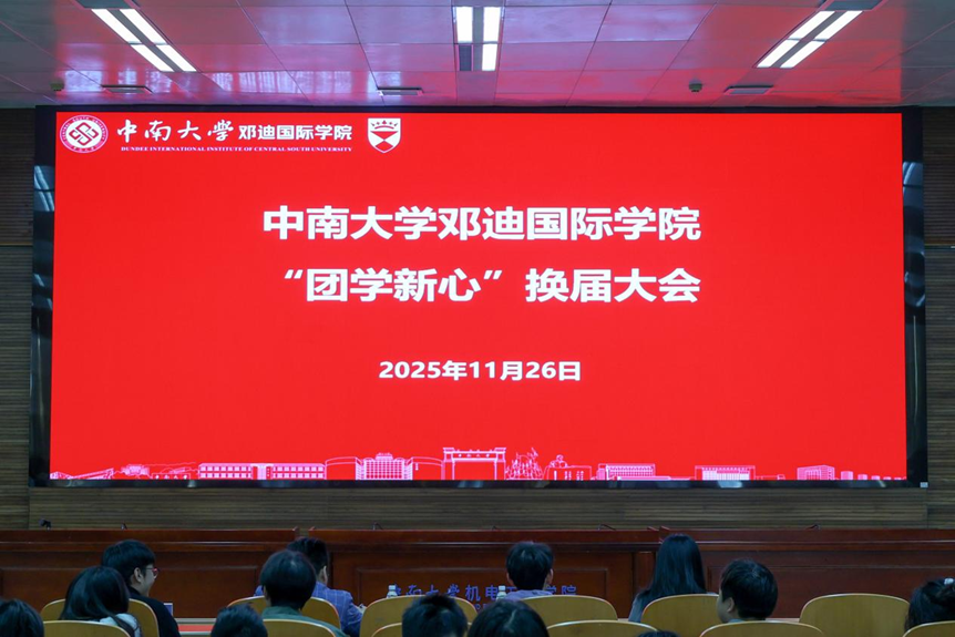 11月26日下午四时,中南大学邓迪国际学院“团学新心”换届大会在潇湘校区机电工程学院B214报告厅举行。学院党总支书记高东波,学工办主任王晓宗,团委书记曹阳,辅导员曾一、宋旭出席大会,新老两届团委学生会成员参加本次会议。