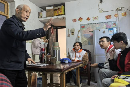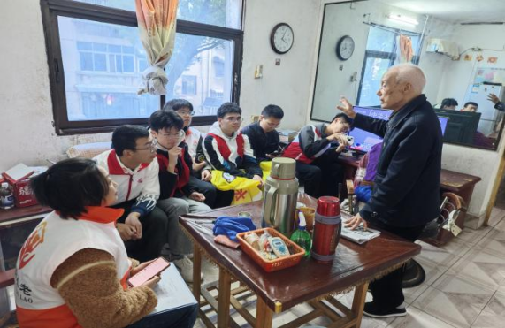 在 95 岁高龄的爷爷家中,同学们细心帮老人打扫房间、整理衣物。得知爷爷阅历丰富,同学们围坐聆听其讲述抗日峥嵘岁月。爷爷结合自身经历,再现艰苦卓绝的抗战历程,字里行间满是家国赤诚与热爱。同学们被其爱国情怀和坚韧意志打动,立志铭记历史、传承红色基因、担当青年使命。