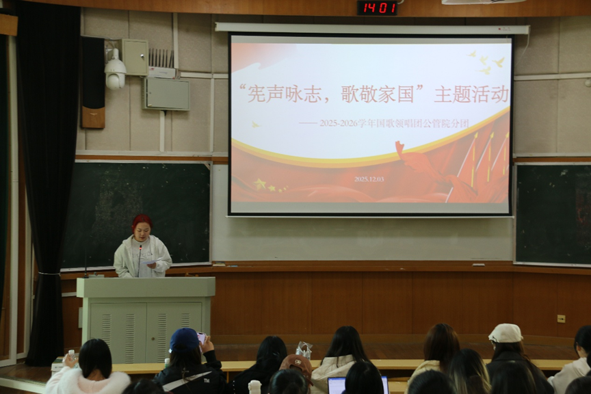 12月3日下午2时,为迎接第十二个“国家宪法日”,弘扬宪法精神,增强青年学子对国歌的尊崇与理解,公共管理学院在天心校区世纪楼D101室成功举办了“宪声咏志·歌敬家国”宪法日国歌领唱暨知识普及活动。活动由院学生会办公室干事文佳仪主持,国歌领唱团公管院分团全体成员及学院本科生共70余人积极参与。