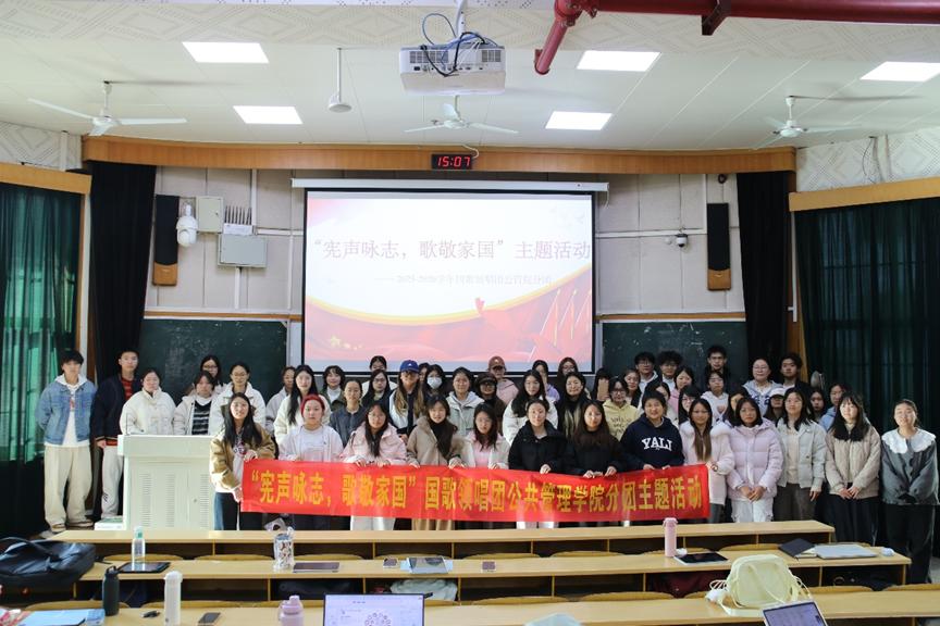 活动最后,全体成员合影留念。本次活动将宪法教育、爱国主义教育与校园文化活动有机融合,有助于提升学生的法治素养与家国认同,激励公管学子自觉成为宪法精神的尊崇者、国歌尊严的维护者与爱国主义的践行者,为中华民族伟大复兴贡献青春力量。