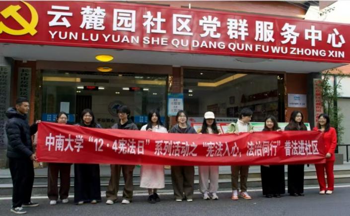 12 月 3 日14时,在中南大学法学院团委的组织下,中南大学法学院团学会在云麓园社区开展“宪润社区,法泽人心”普法进社区活动,本次活动旨在通过多元化的宣传形式,深入推进法治宣传教育,让法律知识走进群众身边,进一步促进高校资源与社区治理深度融合。