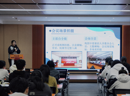 随后,院团委实践部部长高已涵为全体学生干部强调了新闻稿及通知撰写的各项规范要求,并对照片拍摄方面进行了技巧指导;院学生会办公室主任滕紫阳讲授了策划书撰写和报账的具体流程及注意事项;院团委副书记张田悦讲解了PPT的制作技巧并进行相关操作示范。
