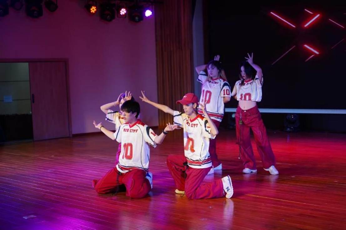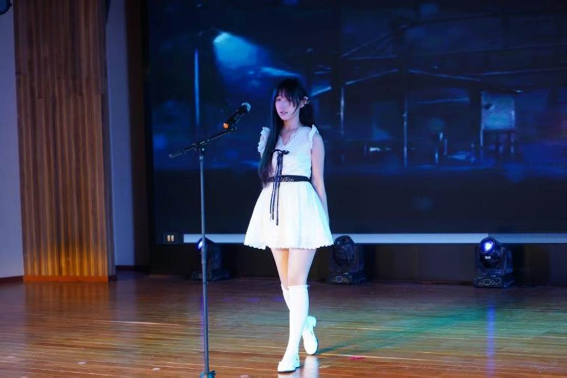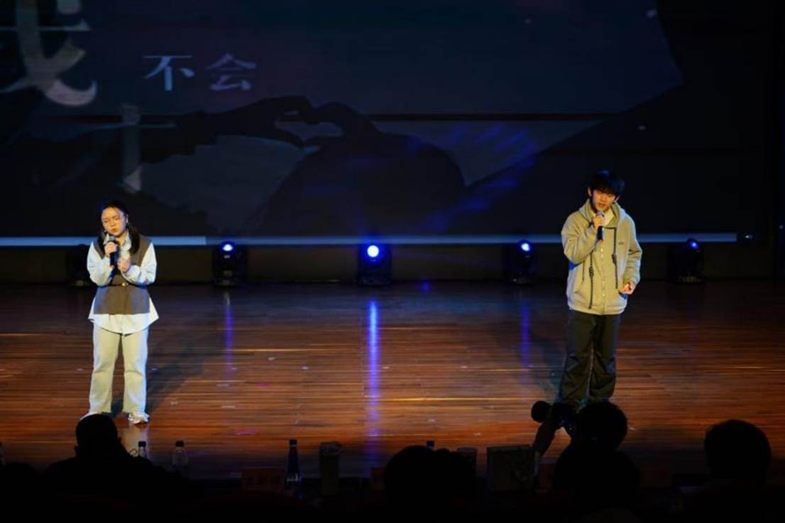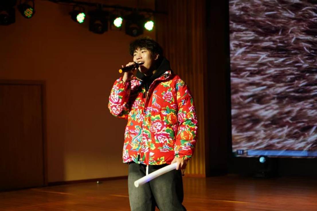 首轮趣味猜歌互动后,节目愈发多元:宁帅铭京剧《鱼肠剑》尽显国粹韵味,孔禹程《大东北我的家乡》勾勒故土烟火;姚姝畅团队舞蹈《神的随波逐流》轻盈灵动,舒清瑶《下潜》以低沉声线叩击人心。第二轮猜动画人物挑战,让师生在欢笑中拉近距离。