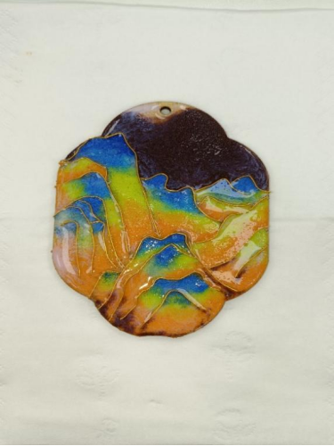理论讲解后,手作实践环节就正式拉开序幕。同学们化身为“手工匠人”,开启了自己的创作之旅。掐丝珐琅制作需经四步:临摹,在底板上描绘纹样蓝图;掐丝,将柔韧的金银细丝依图掐折、粘出轮廓;点蓝,把各色釉料调配好后细心填入金丝围就的轮廓空隙中;最后定型,用淋膜胶对作品进行封层处理,使流光溢彩永久封存。