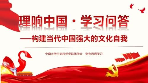 首先,主持人汤敏洁同学带领同学们学习领会了“构建当代中国强大的文化自我”的深刻内涵。团委书记谢彬通过对“我是谁”、“从何而来”、“向何而去”、“本质为何”以及“如何确证”这身份五问的系统阐释,帮助大家进一步深化了对文化主体性、历史根脉、现代方向、本质规定以及实践验证的完整逻辑关系的理解,也更加明确了新时代青年在文化传承与创新中所应肩负的主体责任。