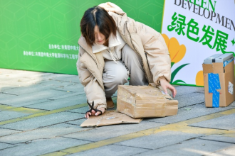 现场气氛热烈,各功能区域均吸引了大量同学驻足体验。在签名承诺区,同学们纷纷留下自己的绿色誓言;纸盒回收区前来捐赠废旧快递纸盒的师生络绎不绝,以实际行动支持资源循环;创意手工区与环保游戏区则成为创意与知识的交汇点,同学们在动手实践中让快递纸盒“变装重生”,在竞技游戏中让环保知识深入人心。