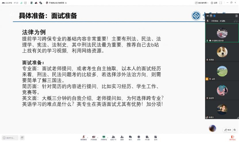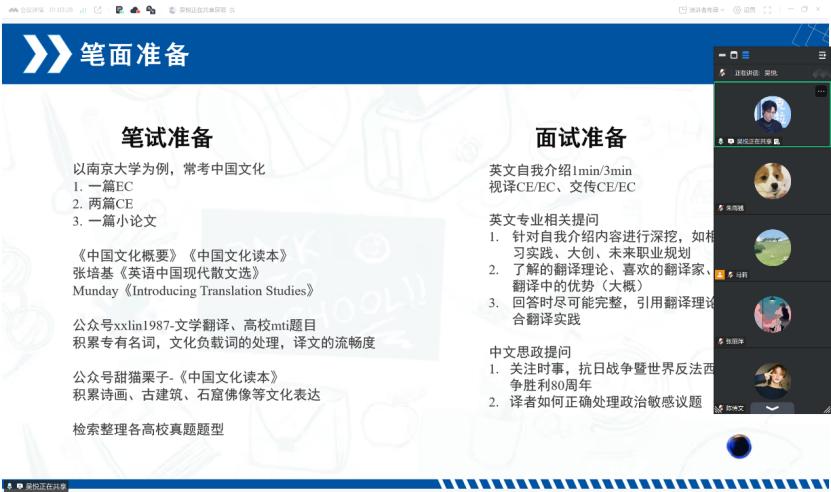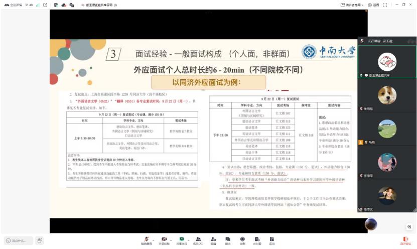 2025年12月10日18:00外国语学院组织开展了线上保研经验分享会,五位保研的同学受邀分享经验,会议由黎子腾主持。