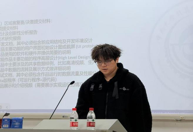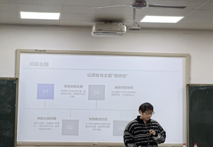 唐琨同学(团队名:写的代码全是bug这不队)则带来了深入的案例剖析。他以自己团队的获奖作品为蓝本,详细阐述了如何从零开始推进一个竞赛项目,包括作品打磨、市场与应用场景定位、挖掘软件深层意义、提升项目价值层次等关键步骤,并分享了团队在比赛过程中的收获与感悟。
