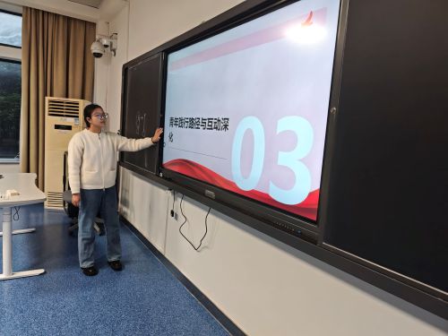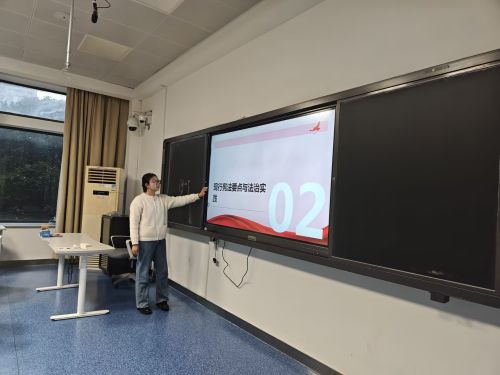 活动的高潮是第三部分青年践行路径与互动深化。支部成员们积极上台发言,分享了自己对宪法和法治的认识,以及作为新时代青年,如何在学习、生活、工作中自觉维护宪法和法律的权威。大家踊跃参与讨论,现场气氛热烈,展现了当代大学生对国家根本大法的关注和尊重。