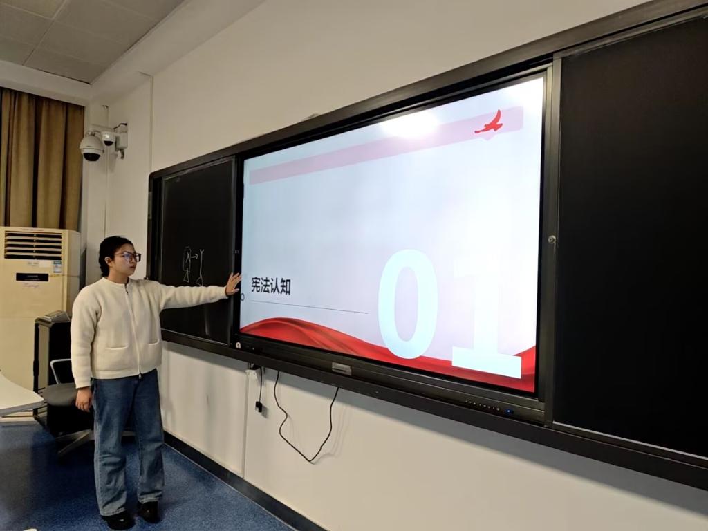 第二部分则进入现行宪法要点与法治实践的讨论,黄小林同学结合生活中的实际案例,深入剖析了公民的基本权利和义务,以及宪法精神如何在日常生活和国家建设中得到体现,使抽象的法律条文变得具体可感。