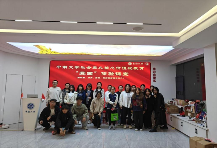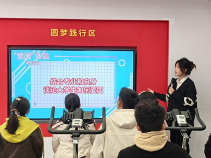 在专业讲解员的带领下,同学们依次走进各主题展区,开展形式丰富的体验学习。VR体验区内,同学们身着“VR军装”,模拟边防战士执勤站岗,切身感受戍边守疆的艰辛与光荣;圆梦践行区中,大家通过骑行互动单车,齐心协力点亮“我爱中国”灯光标识,以生动活泼的方式表达爱国热情。课堂还集中展示了百年来一代代中南人投身国家建设、奉献青春的动人故事,并通过视频访谈形式,邀请师生分享对爱国精神的理解与体会,引发了现场学生的深刻共鸣。