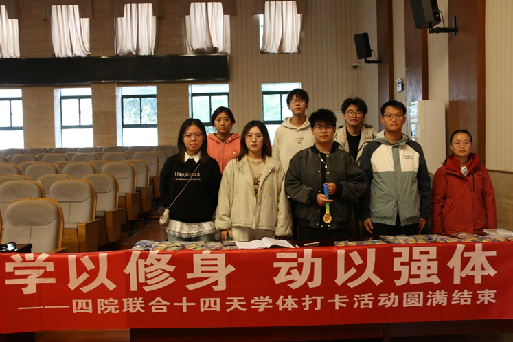12月20日下午1时至2时30分,“十四天学体打卡计划”颁奖仪式在潇湘校区物理院102活动室举行。本次活动由公共管理学院联合土木工程学院、交通运输工程学院以及物理学院共同发起,旨在鼓励学生养成学习与运动相结合的良好习惯。该活动自11月24日启动以来,共吸引了800余名学生参与。