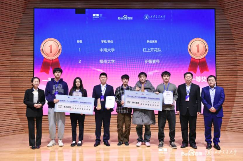 12月27日,2025 IKCEST第七届“一带一路”国际大数据竞赛暨第十一届百度&西安交大大数据竞赛(以下简称“国际大数据竞赛”)在京圆满收官。由中南大学计算机学院赵明、唐枫枭教授团队研究生张高义、朱晨虎、彭良奇组成的“杠上开花队”夺得赛事一等奖第一名的好成绩。