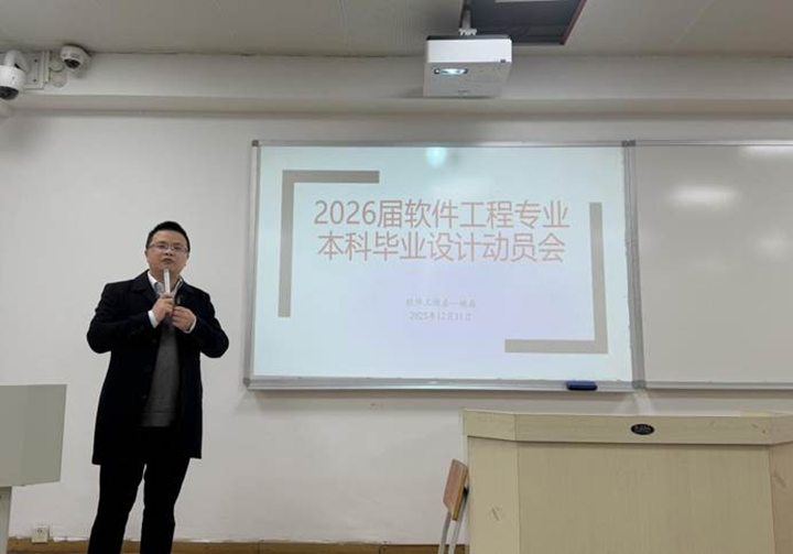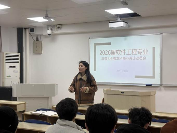 为全面推进2026届软件工程专业本科毕业相关工作,帮助学生明确毕业设计核心目标、熟悉规范流程、筑牢学术诚信根基引,12月31日下午,软件工程系于科教南楼301组成功召开2026届软件工程专业年级大会暨本科毕业设计动员会。软件工程系副主任姚鑫副教授、教师代表费洪晓副教授、辅导员李梦出席会议,软件工程专业2022级全体学生参会。