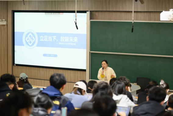 随后,涂老师以自身经历勉励考研考公的同学们不用过分焦虑,认真备考;希望保研的同学们“读万卷书”且“行万里路”,充实自身;提醒留学深造的同学们抓住申请季的黄金时间,表达了对大家的美好祝愿和殷切期望。