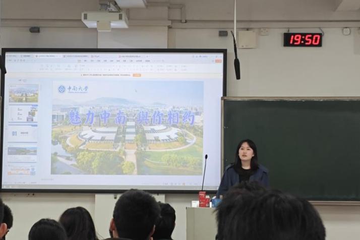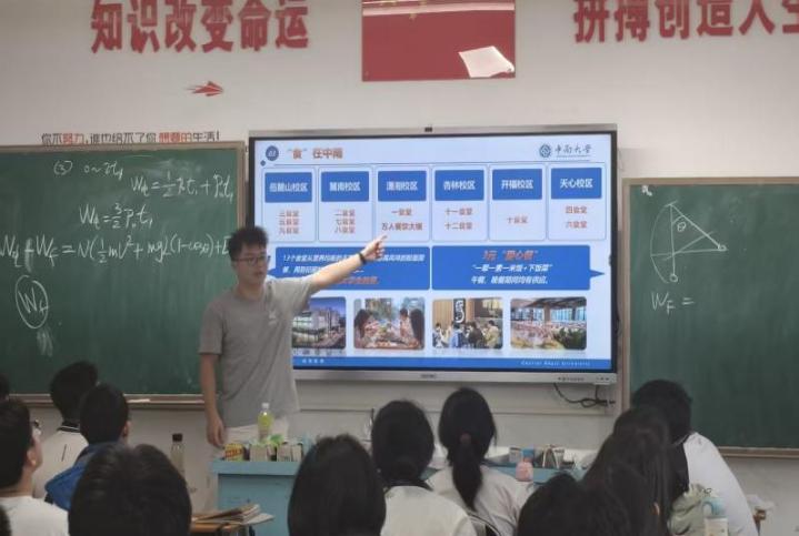 进班宣讲时,成员们以“中南学子”与“母校人”的双重身份,结合自身从母校考入中南大学的亲身经历,分享高考备考心得、大学学习生活等难忘瞬间,重点介绍学校教学实力、专业设置,细致解读针对广东学子的招生政策与录取优势,让学弟学妹直观感受中南魅力。