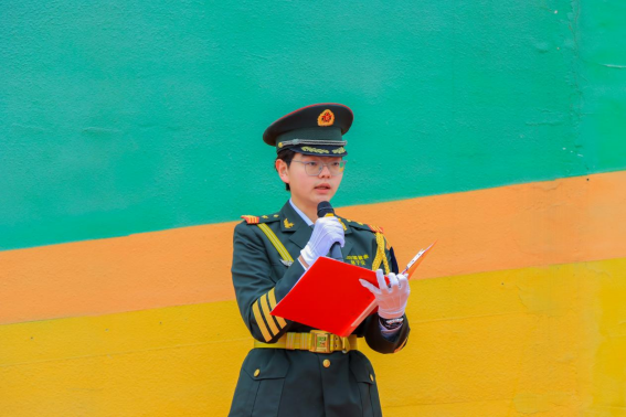 清晨,中南大学国旗班成员与博才新童小学国旗班学生开展联合训练,从队列规范到展旗护旗,高校学子手把手传授技巧,将国旗精神与雷锋爱岗敬业的责任意识融入实践。随后,双方国旗班携手护送国旗入场,庄严的升旗仪式拉开“开学第一课”序幕。中南大学国旗班现场展示了曾在天安门广场升起的国旗,班长赵子安深情讲述国旗背后的历史与象征意义,学生代表谢沁颐以鲜活案例宣讲爱国主义精神,让红色基因深植少年心中。