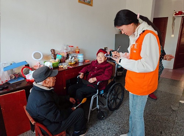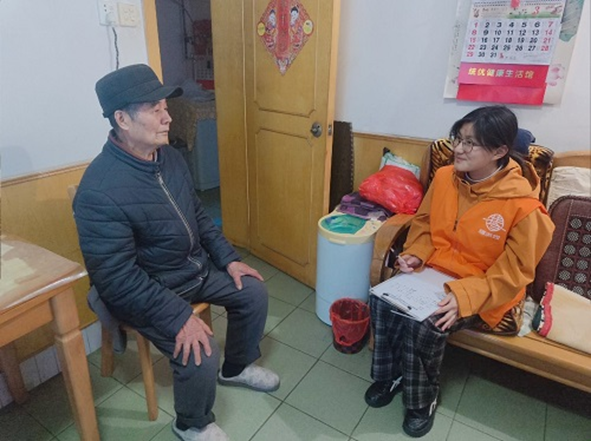 活动室内,志愿者们协助社区医务人员开展血压测量、健康咨询等义诊活动,结合专业知识为老人讲解日常养生要点。志愿者们还主动跟随站点工作人员上门走访,走进高龄、独居及行动不便的老人家中,耐心询问他们的日常起居与健康状况,叮嘱防寒保暖、合理膳食与安全用药等事宜,让不便出门的老人同样感受到温暖与陪伴。活动结束后,志愿者与老人们合影留念,本次活动圆满落幕。