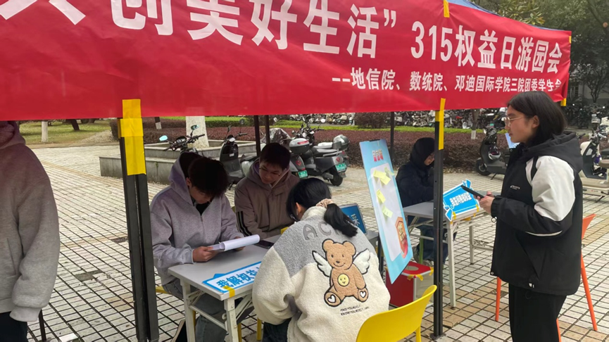 为深入贯彻消费者权益保护理念,提升广大学子的法治意识与自我保护能力,3月15日下午,中南大学数学与统计学院、地球科学与信息物理学院、邓迪国际学院团委学生会在南校区升华广场联合举办“同传权益意识,共建美好生活”主题游园会。本次活动将普法宣传融入游园会的趣味互动,吸引了众多同学前来参与,现场气氛热烈,反响良好。
