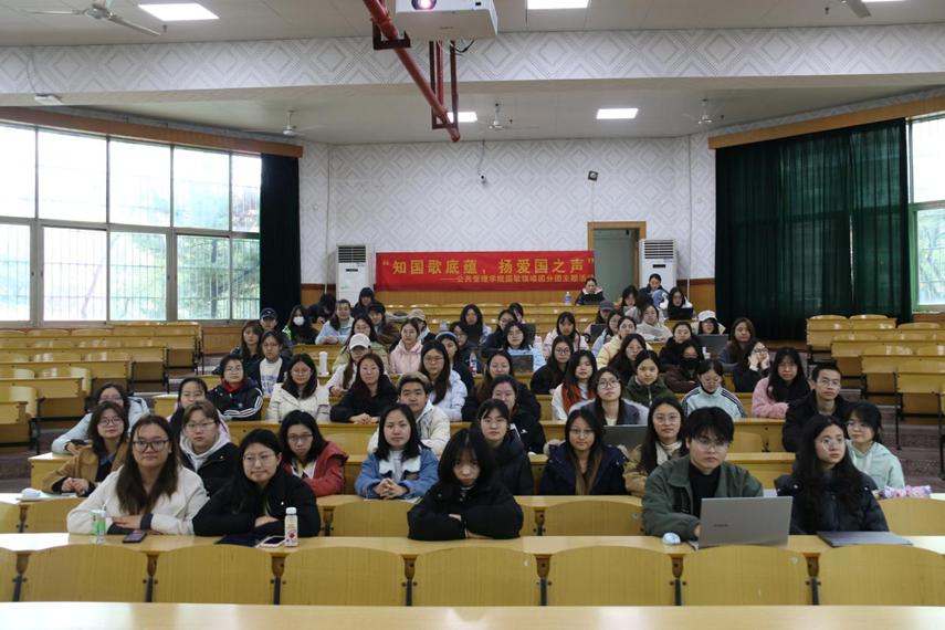 为深入学习贯彻2026年全国两会精神,进一步深化新时代爱国主义教育,3月18日下午2时,公共管理学院在世纪楼D101教室举办了“知国歌底蕴,传爱国之声”国歌领唱团分团主题活动,国歌领唱团公管院分团全体成员及学院本科生共70人参与。活动由李妮可同学主持。